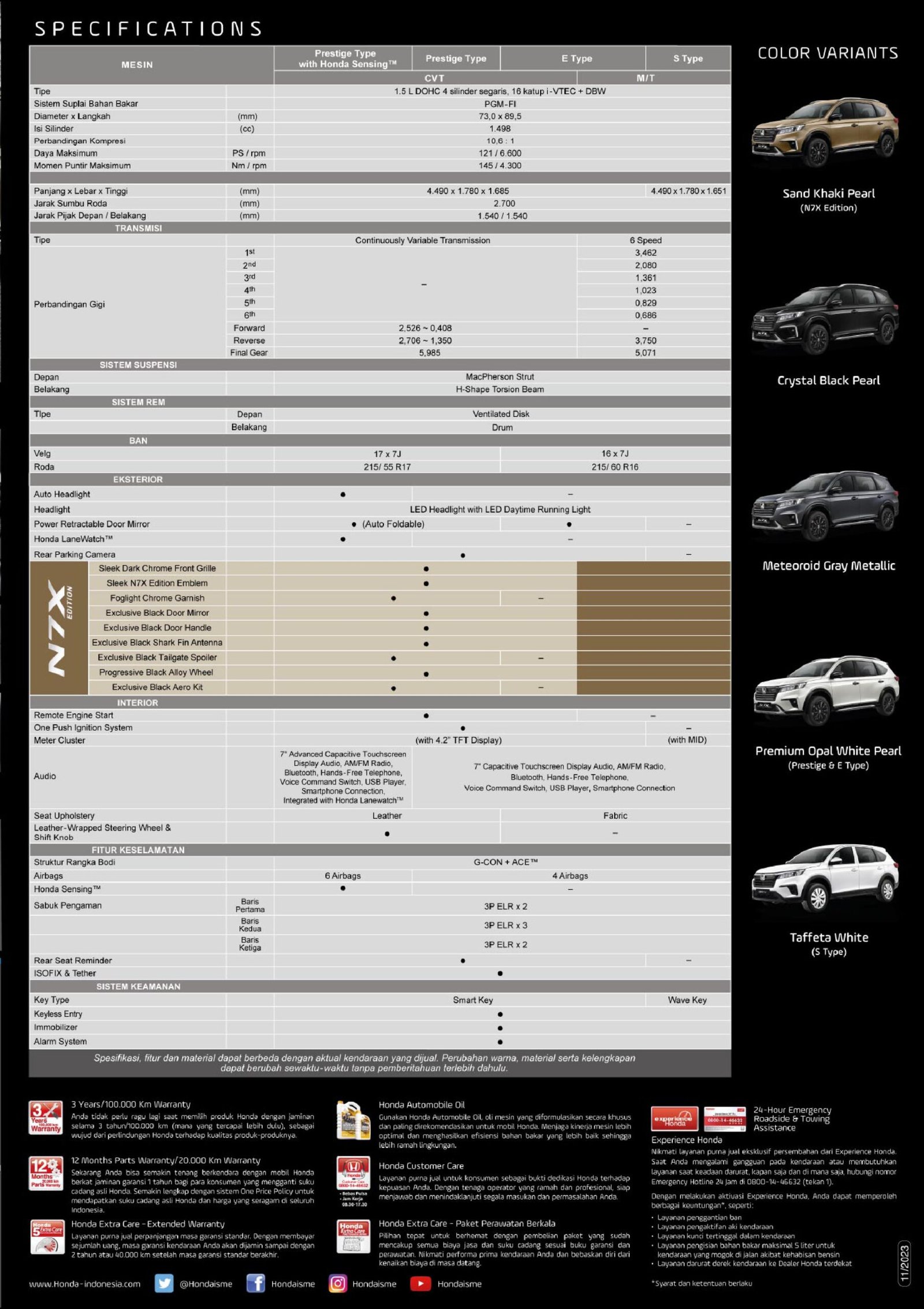 | Prest CVT with Honda Sensing N7X Edition | Rp 363,400,000 |